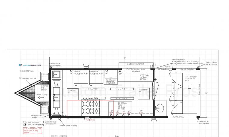 Did you know your custom-built food trailer can be pre-approved by your health department before construction even begins? Are you aware the fire marshal will also need to approve your trailer? That’s why Custom Trailer Pros works with each one of our customers to provide floor plans, spec sheets and any other requested details needed for the plans to be pre-approved. Although pre-approval does not guarantee a trailer will be passed when an inspector goes through it in person, it dramatically improves this likelihood. This process also helps our customers establish good relationships with their local agencies. The sooner you can pass these inspections, the sooner you can start making money.