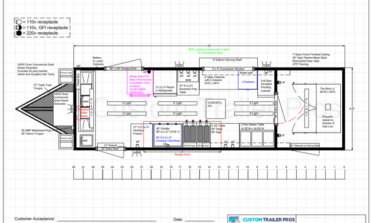 Did you know your custom-built food trailer can be pre-approved by your health department before construction even begins? Are you aware the fire marshal will also need to approve your trailer? That’s why Custom Trailer Pros works with each one of our customers to provide floor plans, spec sheets and any other requested details needed for the plans to be pre-approved. Although pre-approval does not guarantee a trailer will be passed when an inspector goes through it in person, it dramatically improves this likelihood. This process also helps our customers establish good relationships with their local agencies. The sooner you can pass these inspections, the sooner you can start making money.